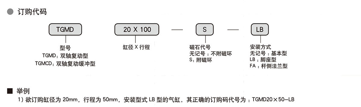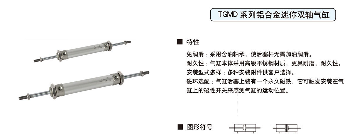 TGMD سلسلة سبائك الألومنيوم مصغرة اسطوانة مزدوجة المحور