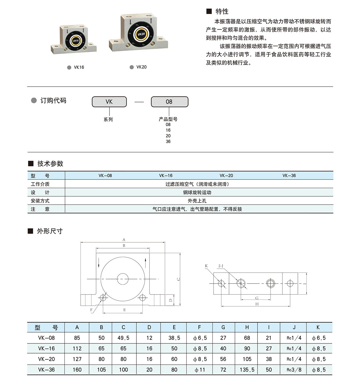 الخصائص : هذا المذبذب يستخدم الهواء المضغوط مثل قوة محرك الأقراص الفولاذ المقاوم للصدأ الكرة لتدوير لإنتاج تردد معين من الإثارة ، مما يجعل أجزاء الاهتزاز ، لتحقيق تأثير التحريك و خلط موحدة . تردد الاهتزاز من مذبذب يمكن تعديلها وفقا لحجم مدخل الهواء الضغط في نطاق معين ، و فائدة نموذج مناسبة لأنّ الصناعات الخفيفة مثل الأغذية والمشروبات والأدوية والصناعات الميكانيكية المماثلة .