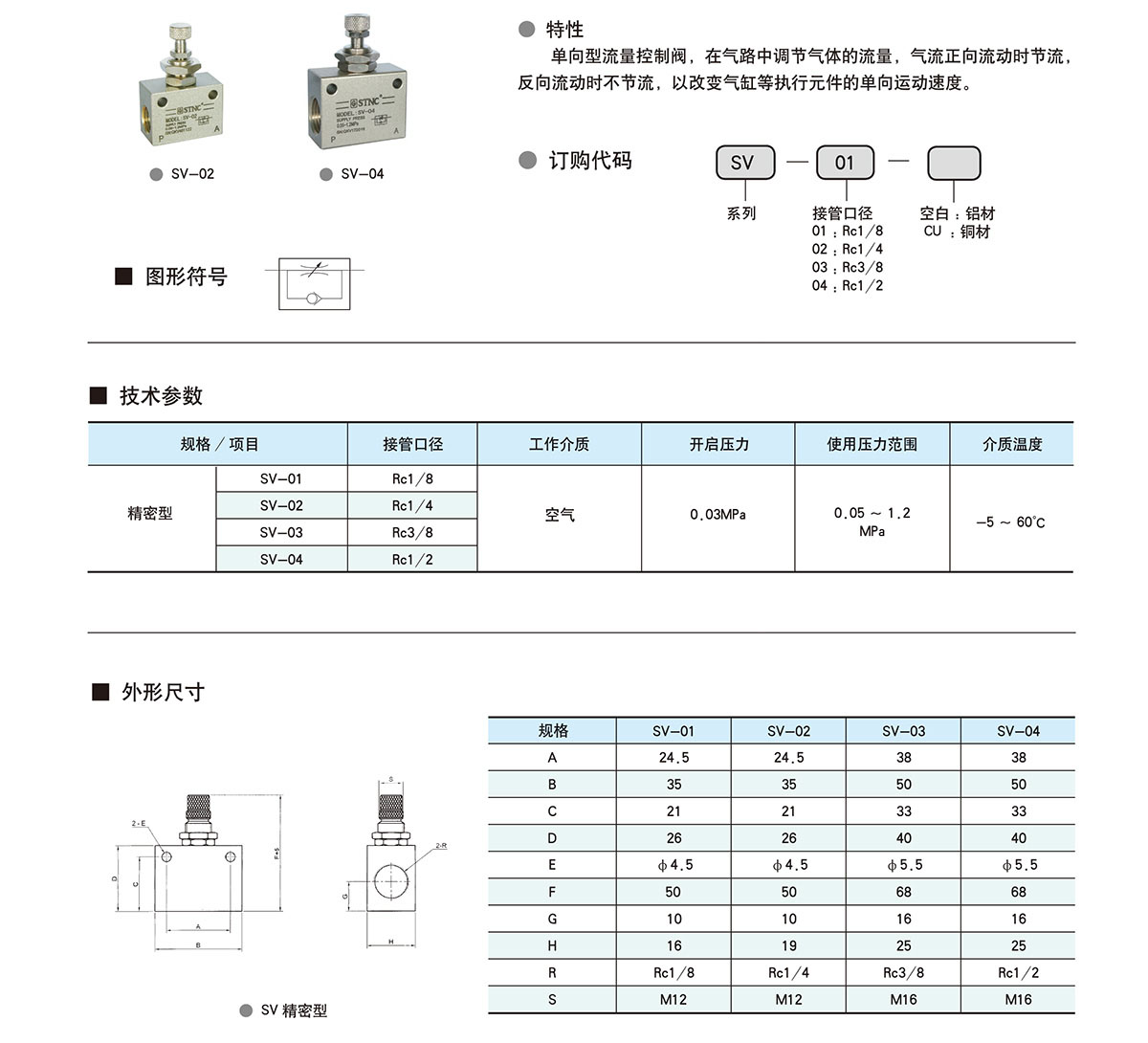 في اتجاه واحد صمام التحكم في التدفق ، وتنظيم تدفق الغاز في مسار الغاز ، تدفق الهواء إلى الأمام عندما خنق ، عكس تدفق لا خنق ، من أجل تغيير سرعة المحرك مثل اسطوانة في اتجاه واحد .